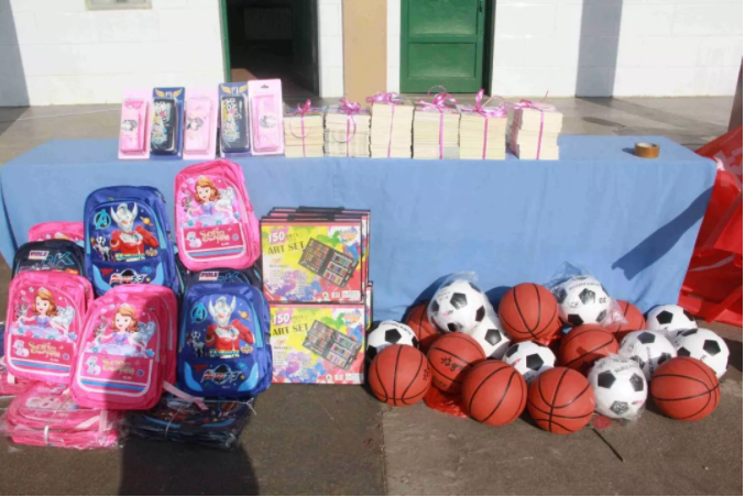 【為學(xué)生們分發(fā)學(xué)習(xí)用品】