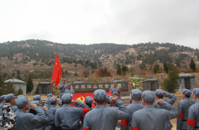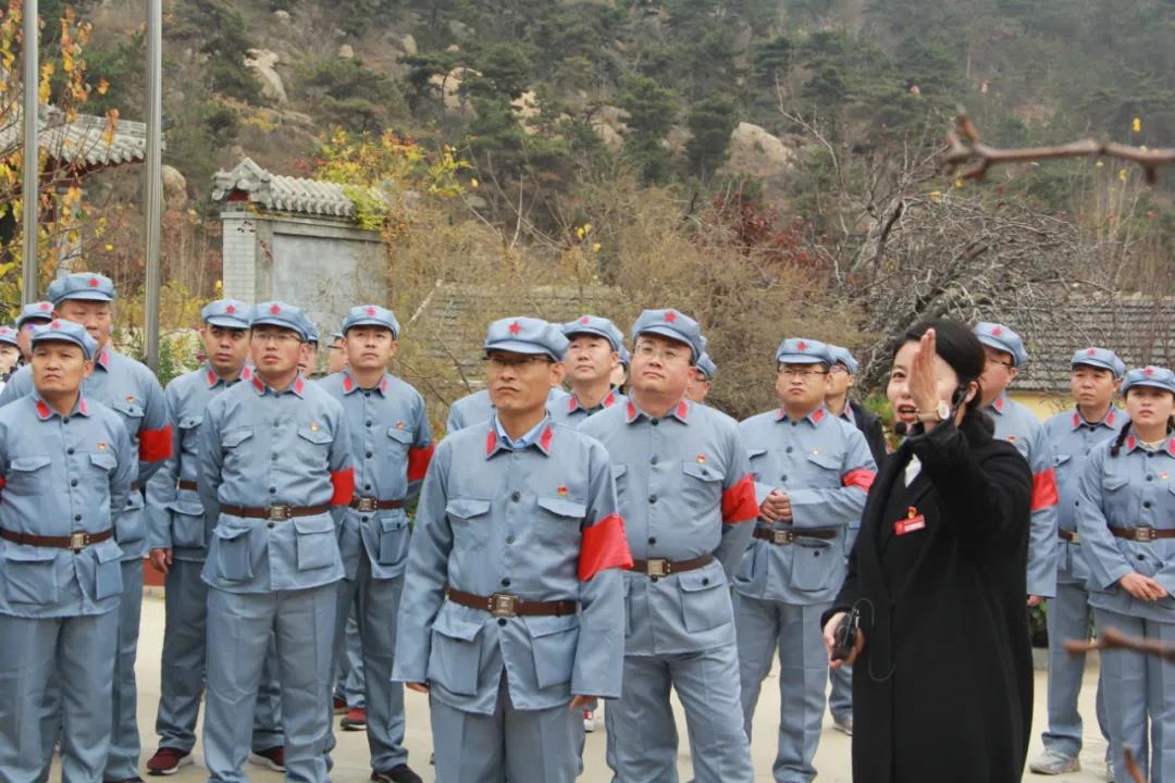 青山默默,松濤陣陣,在莊嚴肅穆的泰安徂徠山烈士陵園前,向革命英烈敬獻花籃,緬懷革命先烈。面對鮮紅的黨旗,全體共產黨員重溫入黨誓詞,做出莊嚴宣誓。