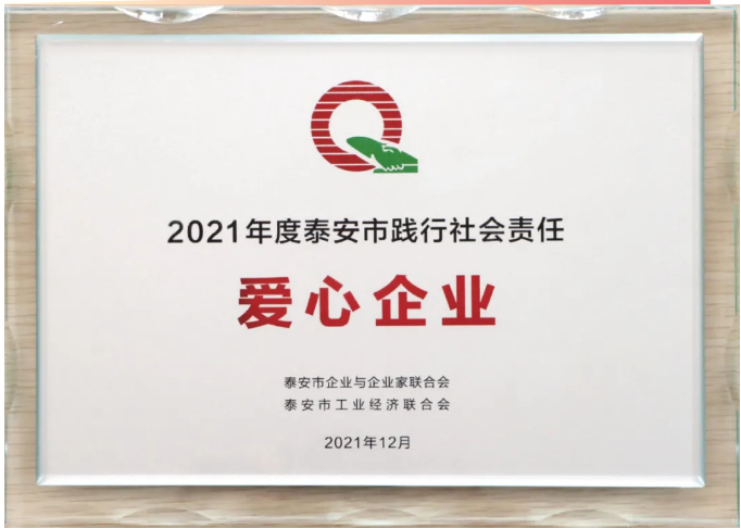 2021年12月26日,由泰安市企業(yè)與企業(yè)家聯(lián)合會和泰安市工業(yè)經(jīng)濟(jì)聯(lián)合會主辦的2021迎新年銀企聯(lián)誼會在泰安萬達(dá)嘉華酒店隆重召開。大會對本年度涌現(xiàn)出的愛心企業(yè)、企業(yè)文化成果和先進(jìn)個(gè)人予以通報(bào)表彰。