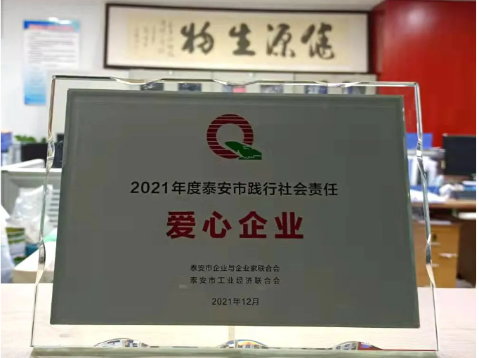 熱烈祝賀山東健源生物科技有限公司榮獲2021年度泰安市踐行社會責(zé)任愛心企業(yè)