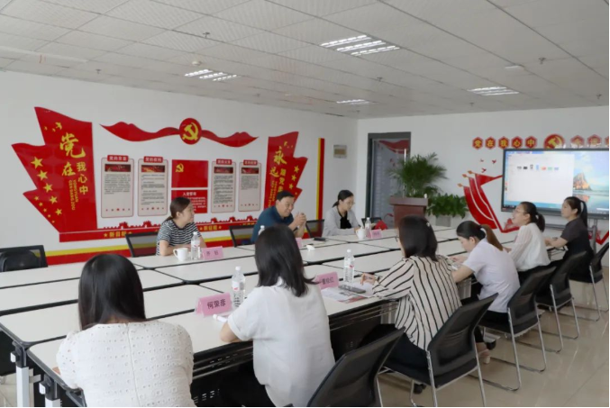 山東健源生物辦公室副主任鞏倩向領導們介紹黨建文化、健源生物企業文化.