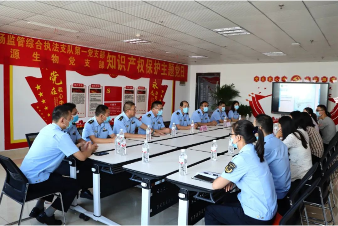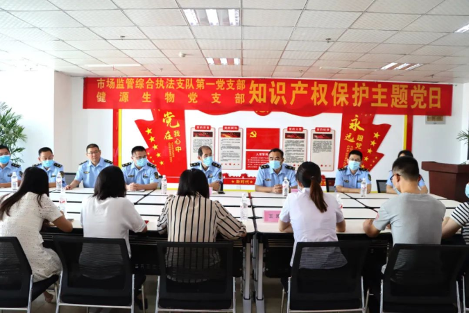 服務(wù)經(jīng)濟(jì)發(fā)展,賦能強(qiáng)市建設(shè)。2022年9月2日,山東健源生物黨支部與泰安市市場(chǎng)監(jiān)管綜合執(zhí)法支隊(duì)黨支部聯(lián)合開展"知識(shí)產(chǎn)權(quán)保護(hù)主題黨日"活動(dòng),增強(qiáng)企業(yè)知識(shí)產(chǎn)權(quán)保護(hù)意識(shí)。泰安市市場(chǎng)監(jiān)管綜合執(zhí)法支隊(duì)副支隊(duì)長(zhǎng)孫鳳明、任常平帶領(lǐng)第一支部12名黨員參加,山東健源生物行政副總經(jīng)理王玲、技術(shù)研發(fā)部主任董桂紅等相關(guān)部門負(fù)責(zé)人一同參與活動(dòng)。