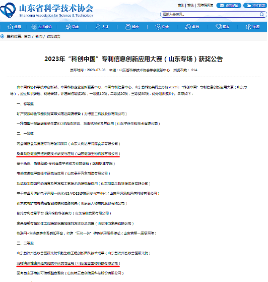 附《2023年“科創中國”專利信息創新應用大賽(山東專場)獲獎公告》