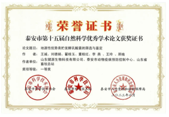 為深入推進泰安市“科創(chuàng)中國”試點市建設(shè),培養(yǎng)人才,繁榮學術(shù),鼓勵創(chuàng)新,提升泰安市廣大科技工作者的學術(shù)水平,根據(jù)泰安市人才工作計劃,由泰安市科協(xié)、泰安市科技局、泰安市人社局在全市組織開展了泰安市第十五屆自然科學優(yōu)秀學術(shù)論文評選活動。本次評選堅持公開、公平、公正的原則,采用異地評委評選的方式進行,共評出一等獎42項;二等獎70項;三等獎82項。山東健源生物科技有限公司《地源性優(yōu)勢青貯發(fā)酵乳酸菌的篩選與鑒定》項目榮獲泰安市第十五屆自然科學優(yōu)秀學術(shù)論文一等獎。