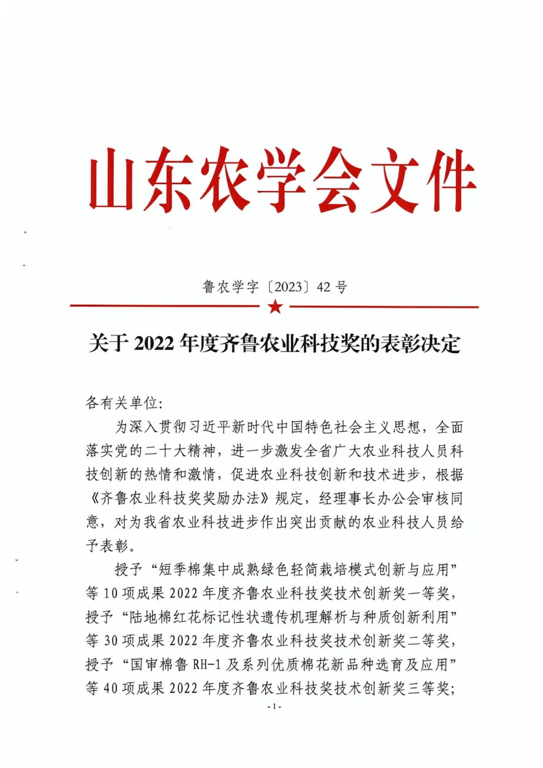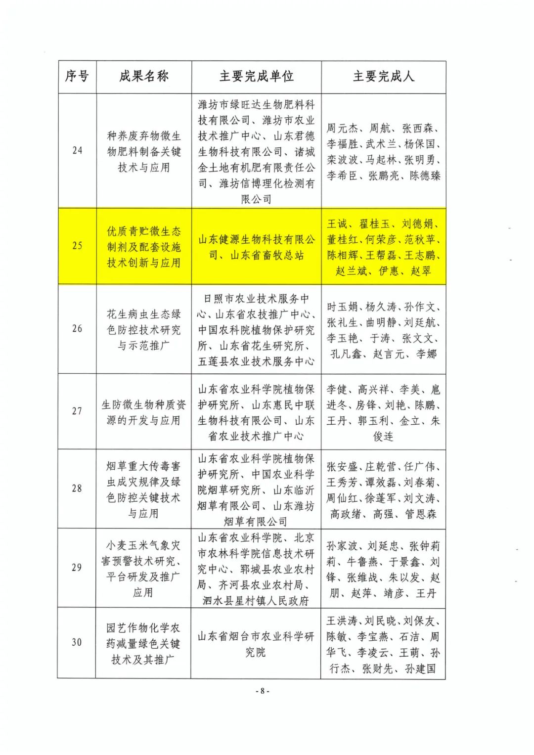 附:關于2022年度齊魯農業科技獎的表彰決定及健源獲獎名錄