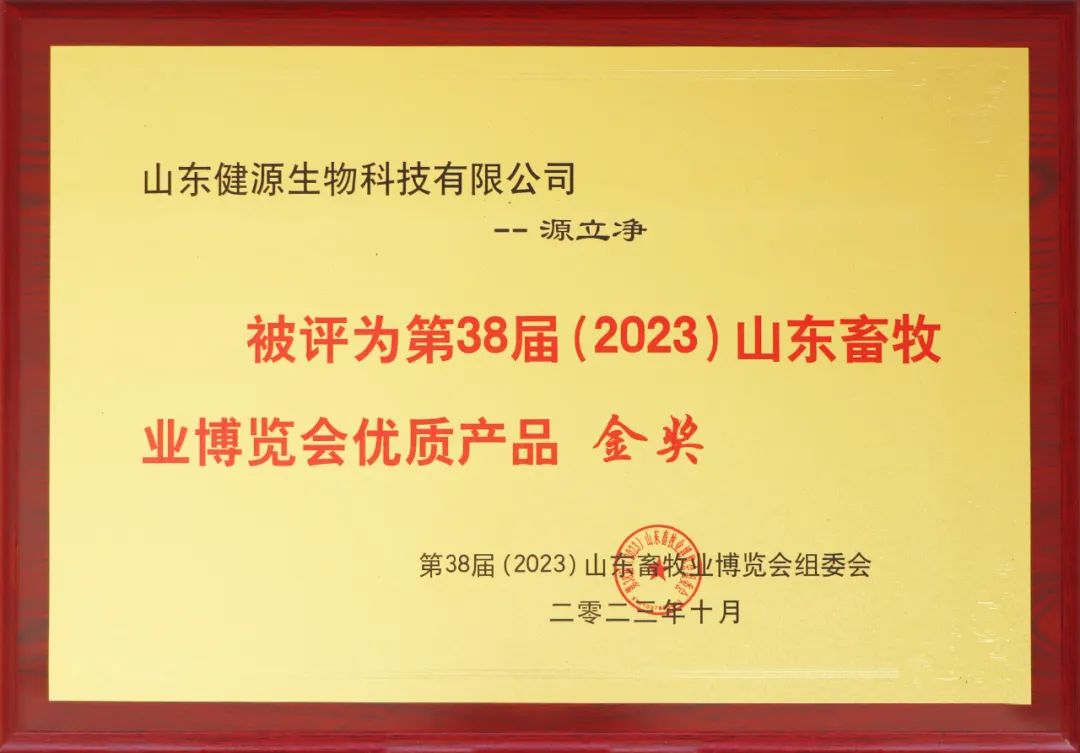 山東健源生物產品“源立凈”獲得第38屆山東畜牧業博覽會優質產品金獎
