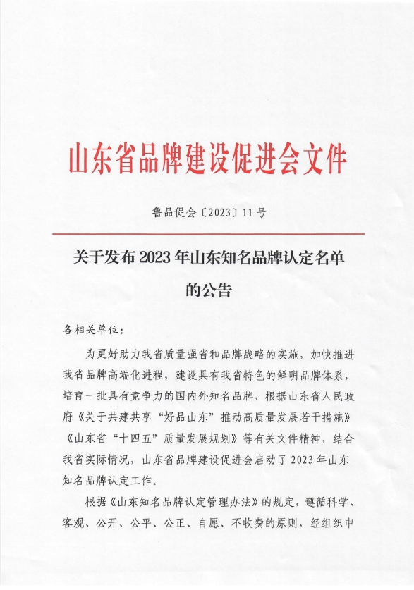 “山東知名品牌”認定,是根據山東省人民政府《關于共建共享“好品山東”推動高質量發展若干措施》《山東省“十四五”質量發展規劃》等有關文件精神,結合我省實際情況,山東省品牌建設促進會啟動實施2023年山東知名品牌認定工作。根據《山東知名品牌認定管理辦法》的定,遵循科學、客觀、公開、公平、公正、自愿、不收費的原則,經組織申報、資格審查、大數據信息挖掘、信息化系統平臺評審、專家評審、認定專家委員會審議、認定文員會認定等工作程序,認定了409個產品項目,84個服務項目,獲得2023年山東知名品牌認定資格。