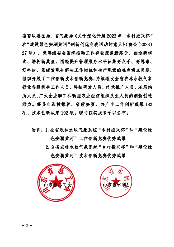 本次競賽活動是根據(jù)《關(guān)于深化開展2023年“鄉(xiāng)村振興杯”和“建設(shè)綠色安瀾黃河”創(chuàng)新創(chuàng)優(yōu)競賽活動的意見》(魯會【2023】27號),競賽組委會圍繞推動工作突破探索新路子、創(chuàng)造新模式、培樹新典型,圍繞提升管理服務(wù)水平征集好點子、好思路、好舉措,圍繞發(fā)現(xiàn)并解決工作崗位和生產(chǎn)現(xiàn)場的難點堵點問題,組織開展了工作創(chuàng)新技術(shù)創(chuàng)新競賽,經(jīng)縣市選拔推薦、省級決賽,競賽組委會嚴(yán)格規(guī)范評選,共產(chǎn)生技術(shù)創(chuàng)新成果192項,其中,一等獎33項。