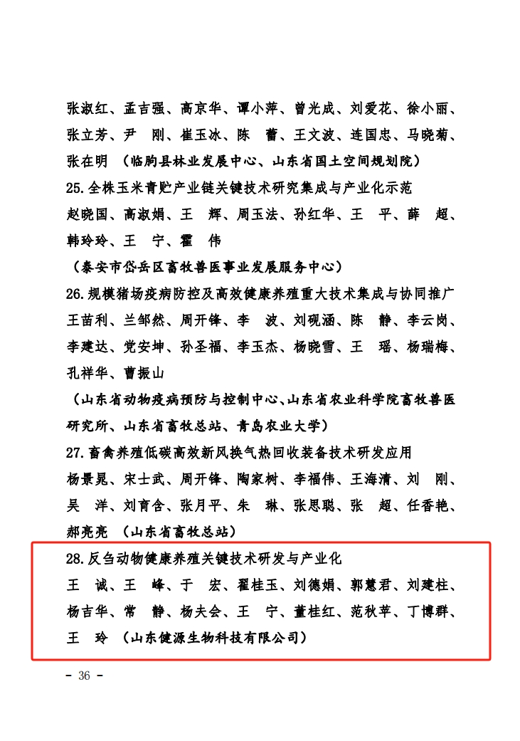 近日,山東省總工會、省水利廳、省農(nóng)業(yè)農(nóng)村廳、省自然資源廳、省畜牧獸醫(yī)局、省氣象局發(fā)布了2023年度全省農(nóng)林水牧氣象系統(tǒng)“鄉(xiāng)村振興杯”和“建設(shè)綠色安瀾黃河”工作創(chuàng)新技術(shù)創(chuàng)新競賽獲獎成果,山東健源生物科技有限公司的《反芻動物健康養(yǎng)殖關(guān)鍵技術(shù)研發(fā)與產(chǎn)業(yè)化》項目榮獲技術(shù)創(chuàng)新競賽優(yōu)秀成果一等獎。