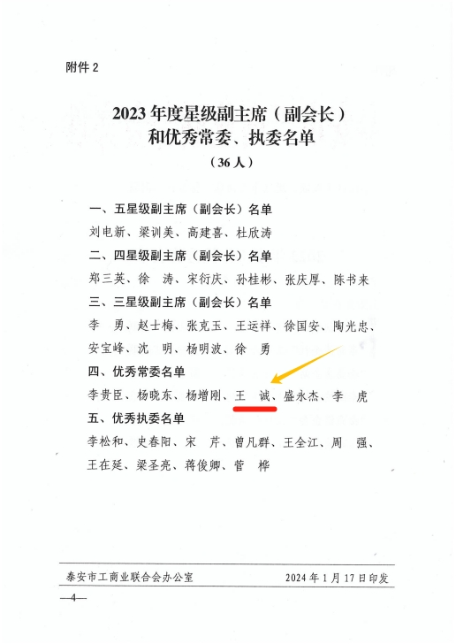 董事長(zhǎng)王誠(chéng)榮獲泰安市工商聯(lián)“優(yōu)秀常委”榮譽(yù)稱號(hào)