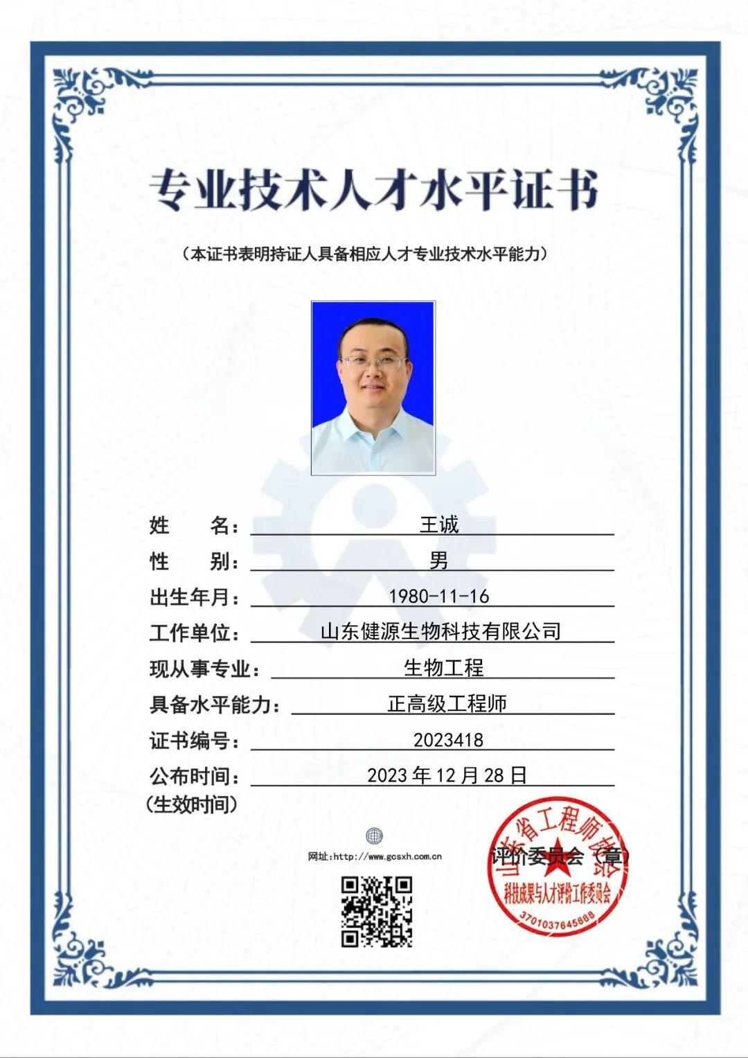 根據(jù)《山東省工程師協(xié)會人才評價實施意見(試行)》和《山東省工程師協(xié)會人才評價試行標準》,經(jīng)資格審查和專家評審?fù)ㄟ^,共有51人具備正高級工程師資格、161人具備高級工程師資格,154人具備工程師資格,53人具備助理工程師資格。山東健源生物科技有限公司董事長王誠獲評正高級工程師資格。