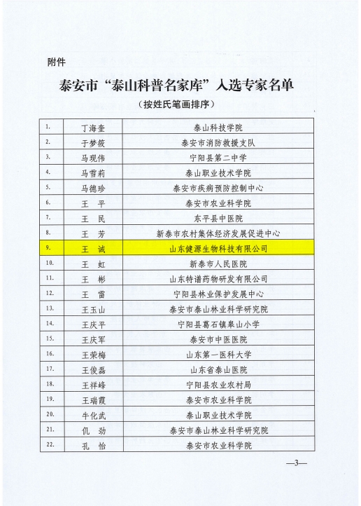 發布時間:[2024-6-6 16:33:30] 瀏覽量:2761次近日,泰安市科學技術協會公布了泰安市“泰山科普名家庫”入選專家名單,根據泰安市“泰山科普名家庫”入庫標準,山東健源生物科技有限公司董事長王誠被認定為泰安市“泰山科普名家”。