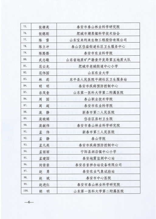 根據《關于組建泰安市“泰山科普名家庫”的通知》(泰科協字[2024]21號)要求,泰安市“泰山科普名家庫”評選工作經過材料初審、專家審核評議和公示等環節,最終,126人入選泰安市“泰山科普名家庫”。