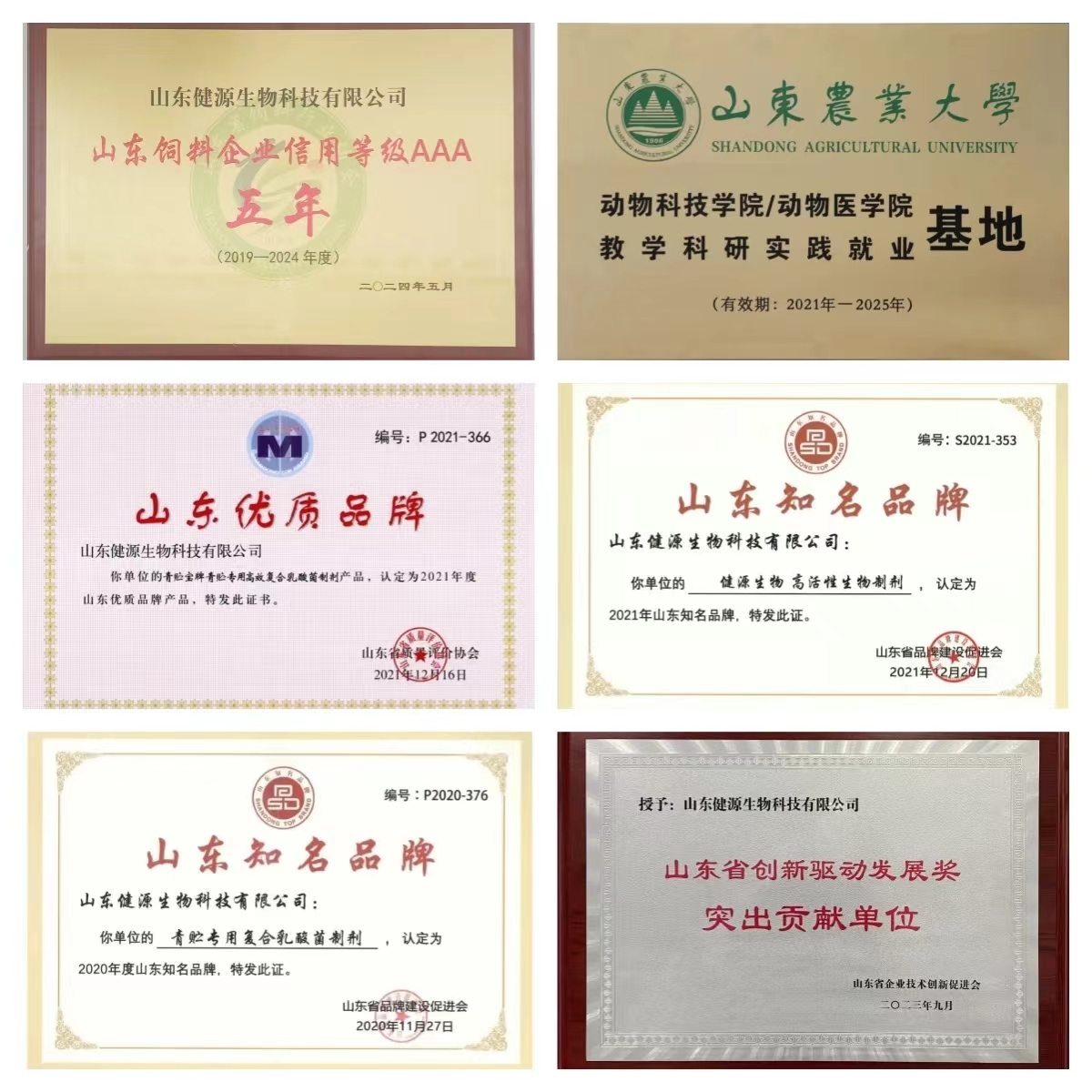 山東健源生物科技有限公司系國家高新技術企業、國家科技型中小企業、山東省瞪羚企業、山東省專精特新中小企業、山東省一企一技術研發中心、泰安市農業產業化重點龍頭企業。公司深耕動物微生態行業十年,主攻動物類生物大健康產品,研發出三十多種高活性生物制劑產品,致力于以高科技生物技術保障動物健康,現已獲得國家知識產權局頒發的各類專利證書100余項,其中包括32項國家發明專利、3項國際發明專利,60余項實用新型專利、14項軟件著作權,注冊商標100多個,還有正在申請中的國家發明專利20余項,累計榮獲市級科技獎項7項,省級科技獎項30余項,部級科技獎項12項。
