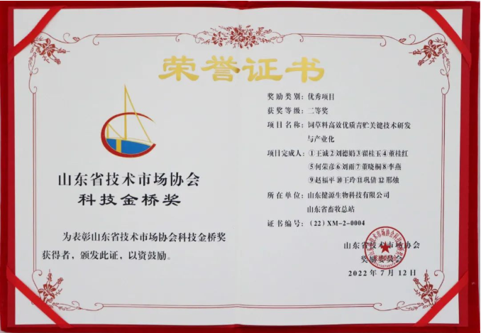 2022-8-11 【喜報】山東健源生物榮獲山東省科技金橋獎二等獎