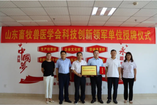 2022年8月1日,山東畜牧獸醫(yī)學(xué)會(huì)“科技創(chuàng)新領(lǐng)軍”單位授牌儀式成功舉行,出席此次授牌儀式的有山東畜牧獸醫(yī)學(xué)會(huì)黨支部書記、副理事長兼秘書長崔言順教授,山東農(nóng)業(yè)大學(xué)趙孝民教授,山東農(nóng)業(yè)大學(xué)張桂國教授,山東健源生物科技有限公司王誠董事長等相關(guān)負(fù)責(zé)人參加。